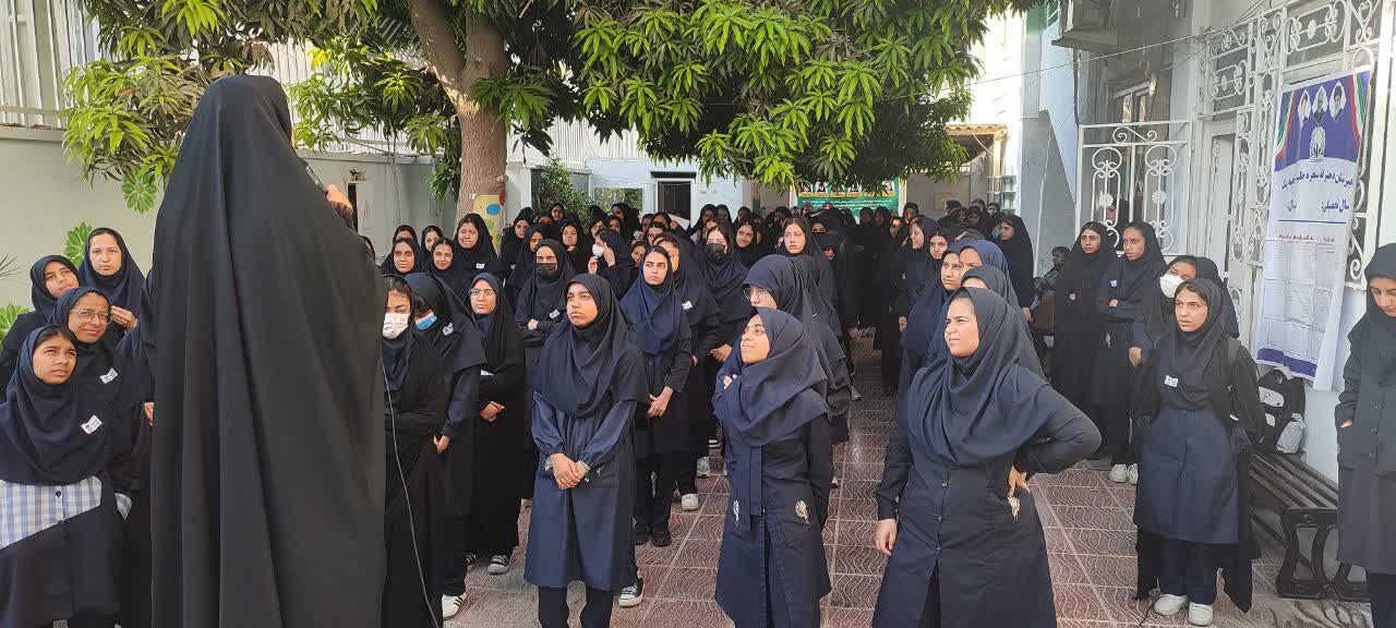 برگزاری صف صبحگاهی همراه با قرائت قرآن و سرود ملی و صحبت های مدیریت آموزشگاه