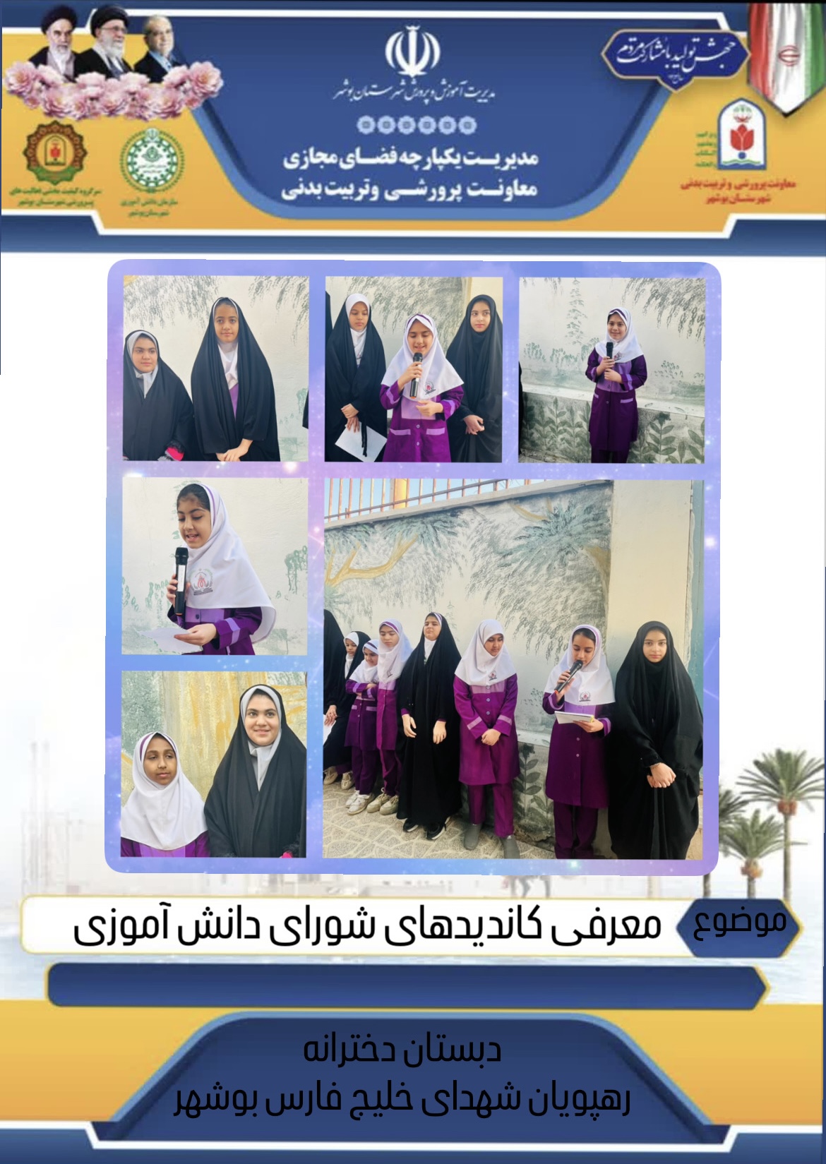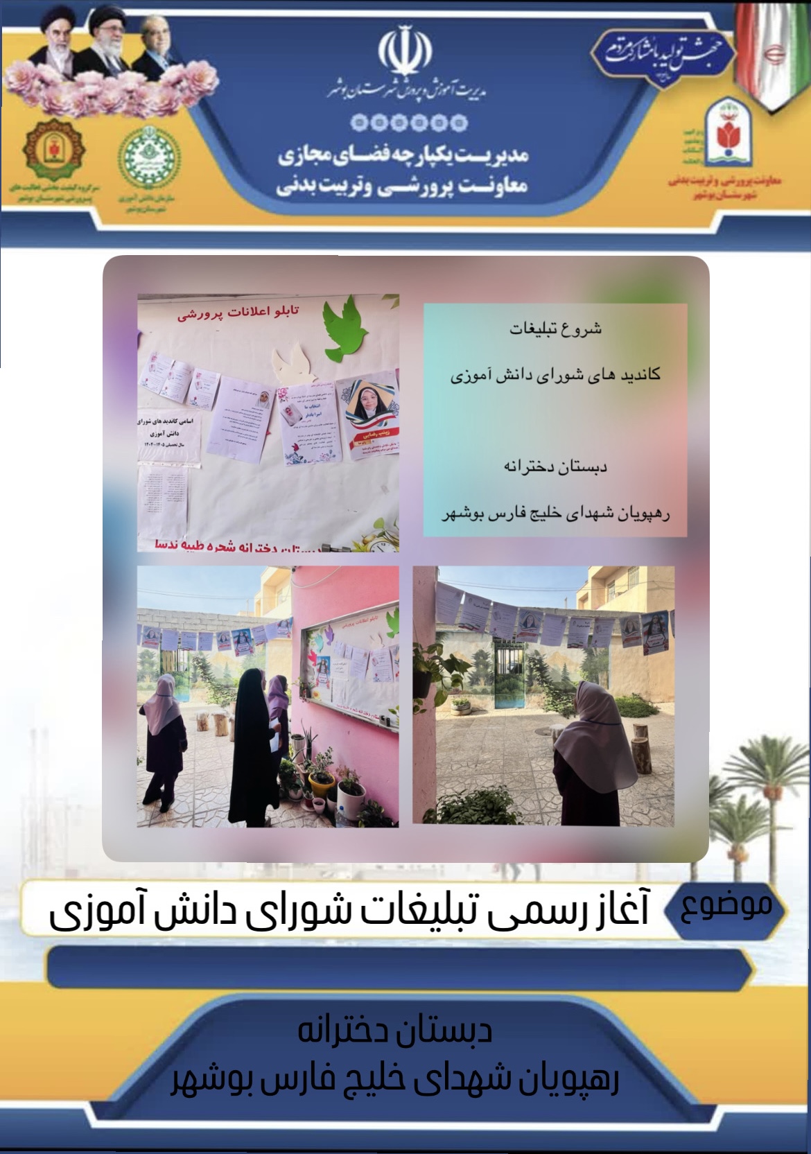 خانم فاطمه دهقانی، معاون پرورشی دبستان دخترانه رهپویان شهدای خلیج فارس، طی ابلاغ صادره از سوی معاون پرورشی اداره آموزش و پرورش استان بوشهر، برای دومین سال متوالی به عنوان همیار سرگروه مدارس ابتدایی و متوسطه اول و دوم مدارس غیر دولتی بوشهر، چغادک و ع