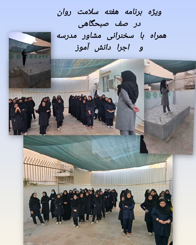 برگزاری صف صبحگاهی همراه با قرائت قرآن و سرود ملی و صحبت های مدیریت آموزشگاه