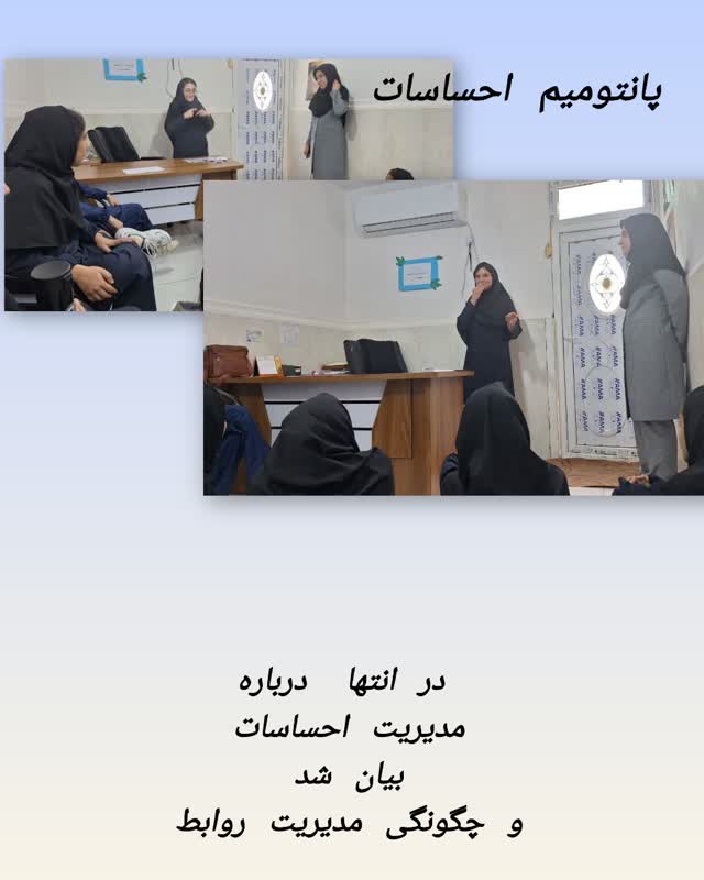 این کارگاه توسط مشاور مدرسه متوسطه دوم با هدف شناسایی و مدیریت احساسات برگزار شد