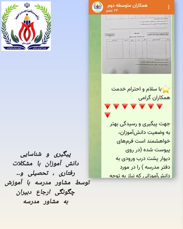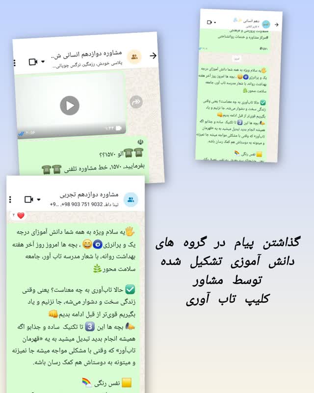 ارسال کلیپ تاب آوری و توضیحات و تکنیک های افزایش تاب آوری در گروه دانآموزان توسط مشاور مدرسه متوسطه دوم انجام شد