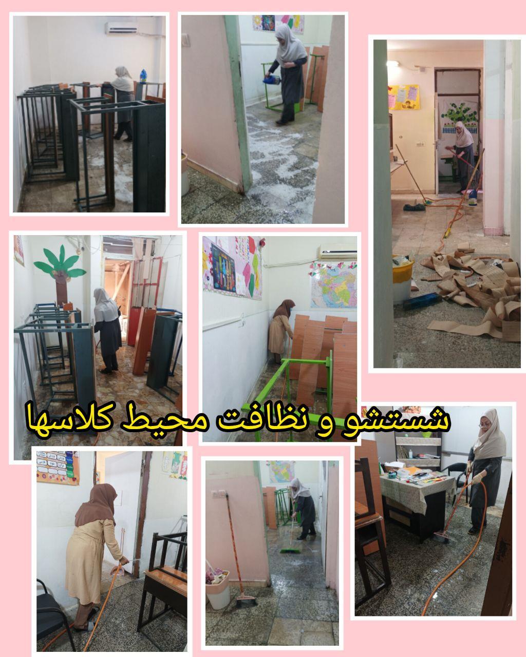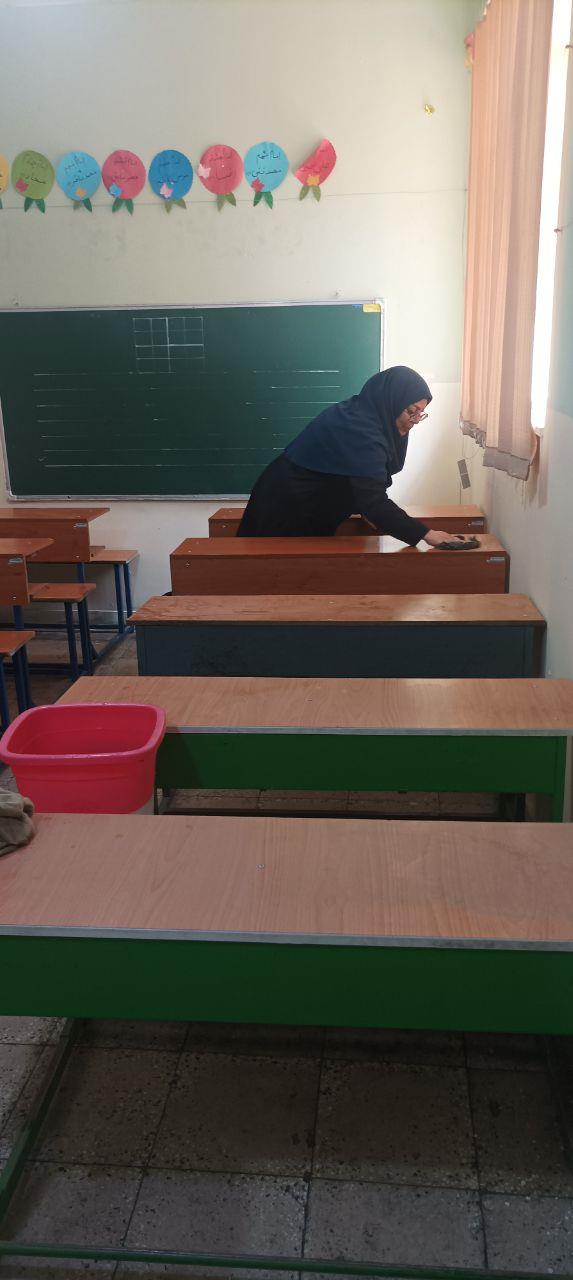 ✅ شستشوی فضای آموزشی و نظافت شیشه کلاسها توسط همیار مدیر و معاون پرورشی