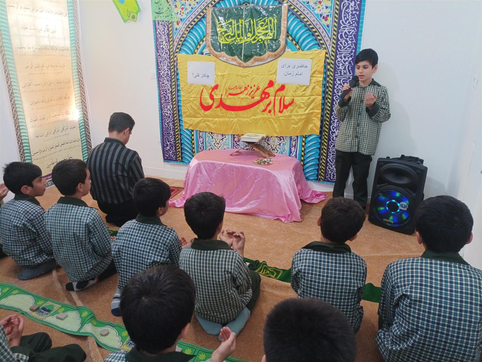 ✅ بعد از پایان نماز معاون پرورشی جهت تشویق دانش آموزان به فریضه نماز ، کارت ۱۰ امتیازی و ۵ امتیازی ، بنا به صحیح خوانی دانش آموزان به آنها جایزه داد.