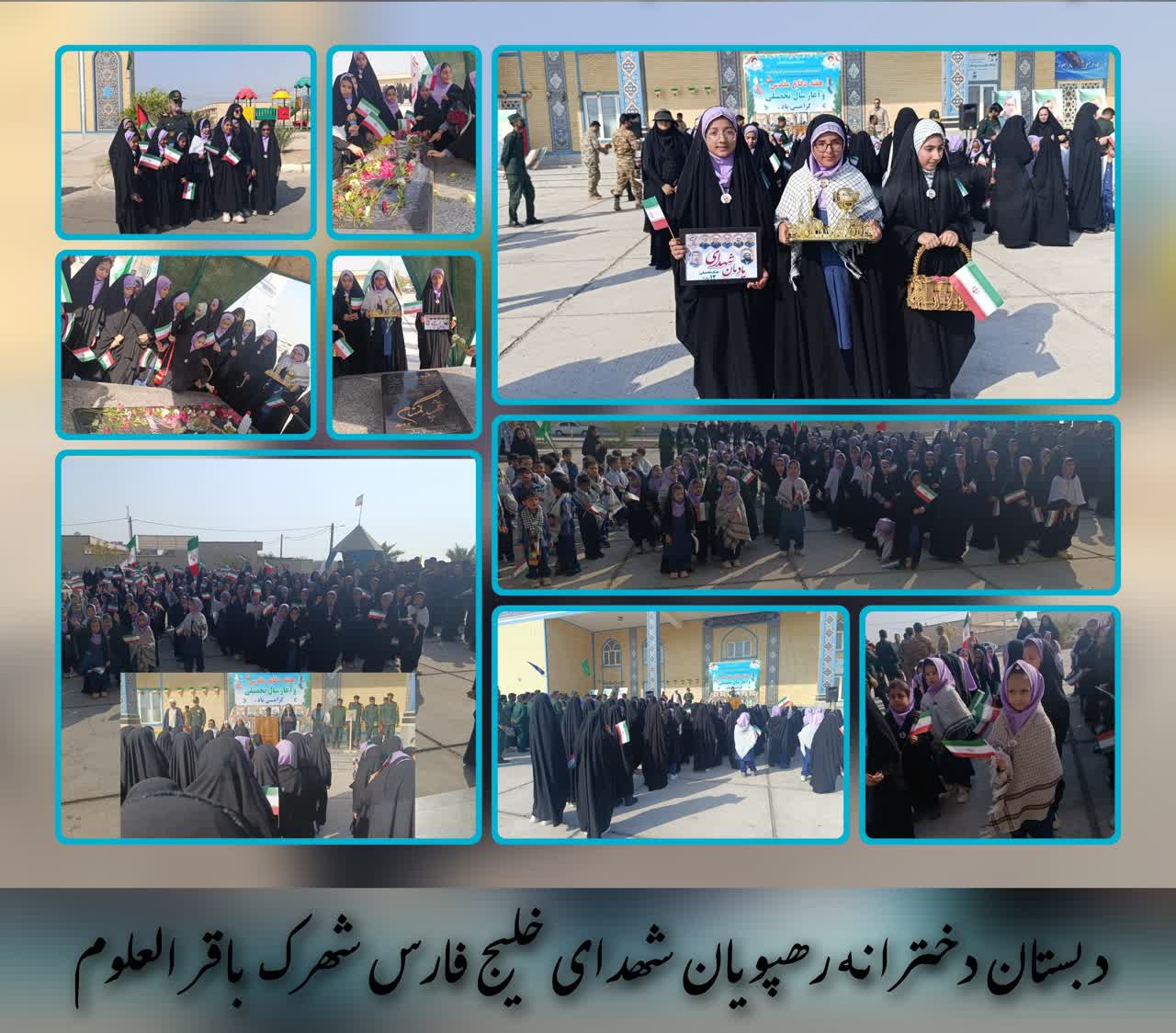 حضور دانش آموزان در گلزار شهدای گمنام شهرک باقرالعلوم العلوم با حضور سردار منطقه پنجم ناسا بندرلنگه