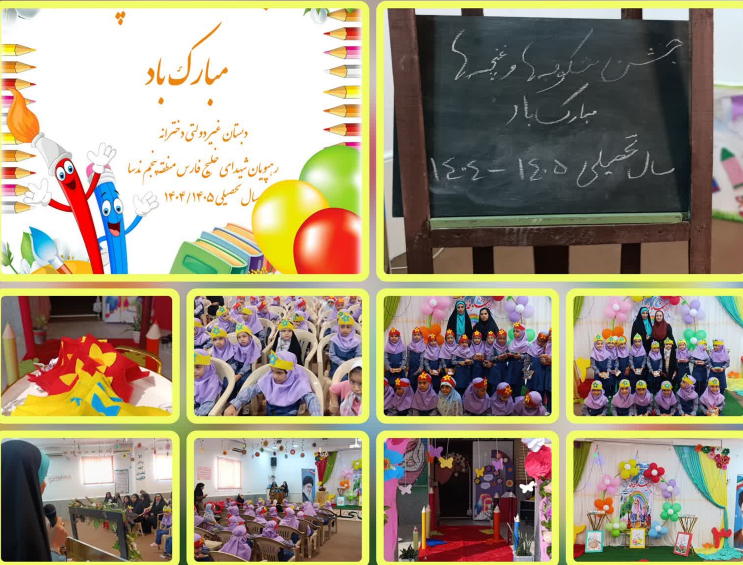 برگزاری مراسم جشن بازگشایی مدرسه بحضور کادر آموزشی در ابتدا ضمن خوش آمد گویی مدیر و تلاوت همگانی قرآن کریم و اجرای سرود ، جشن و پایی کوبی با حضور خرگوش مهربون و در پایان معرفی معلمین هرپایه وکادر آموزشی مدرسه