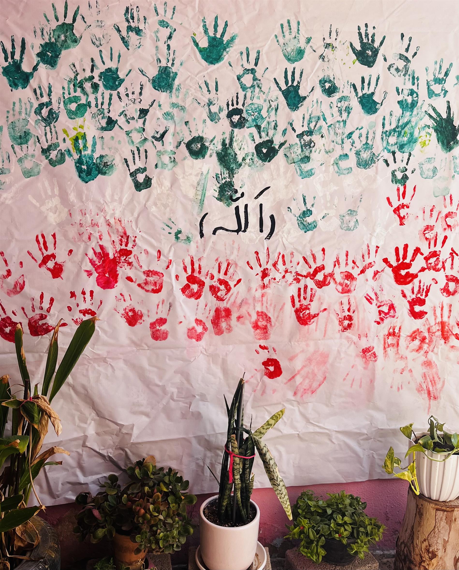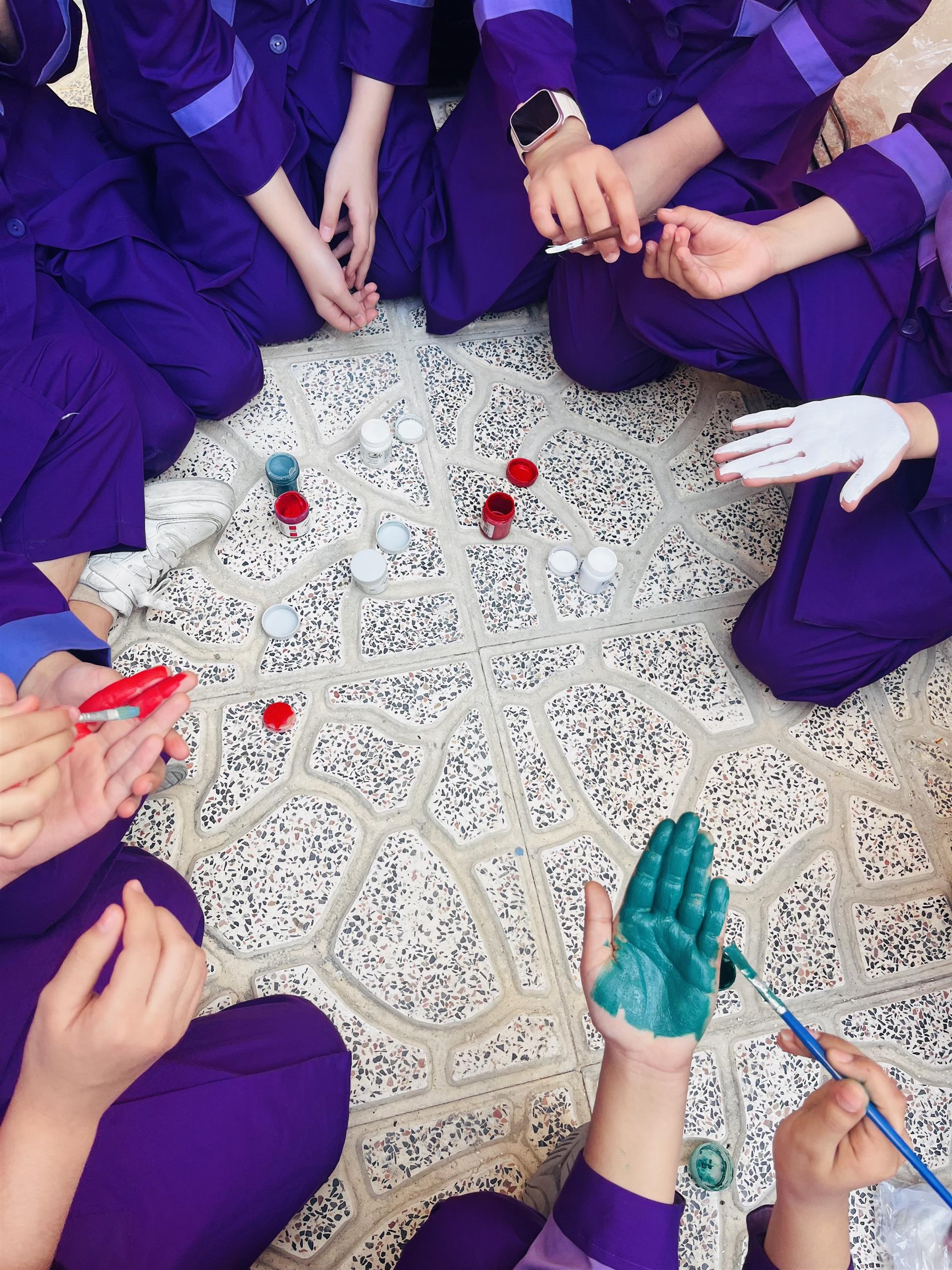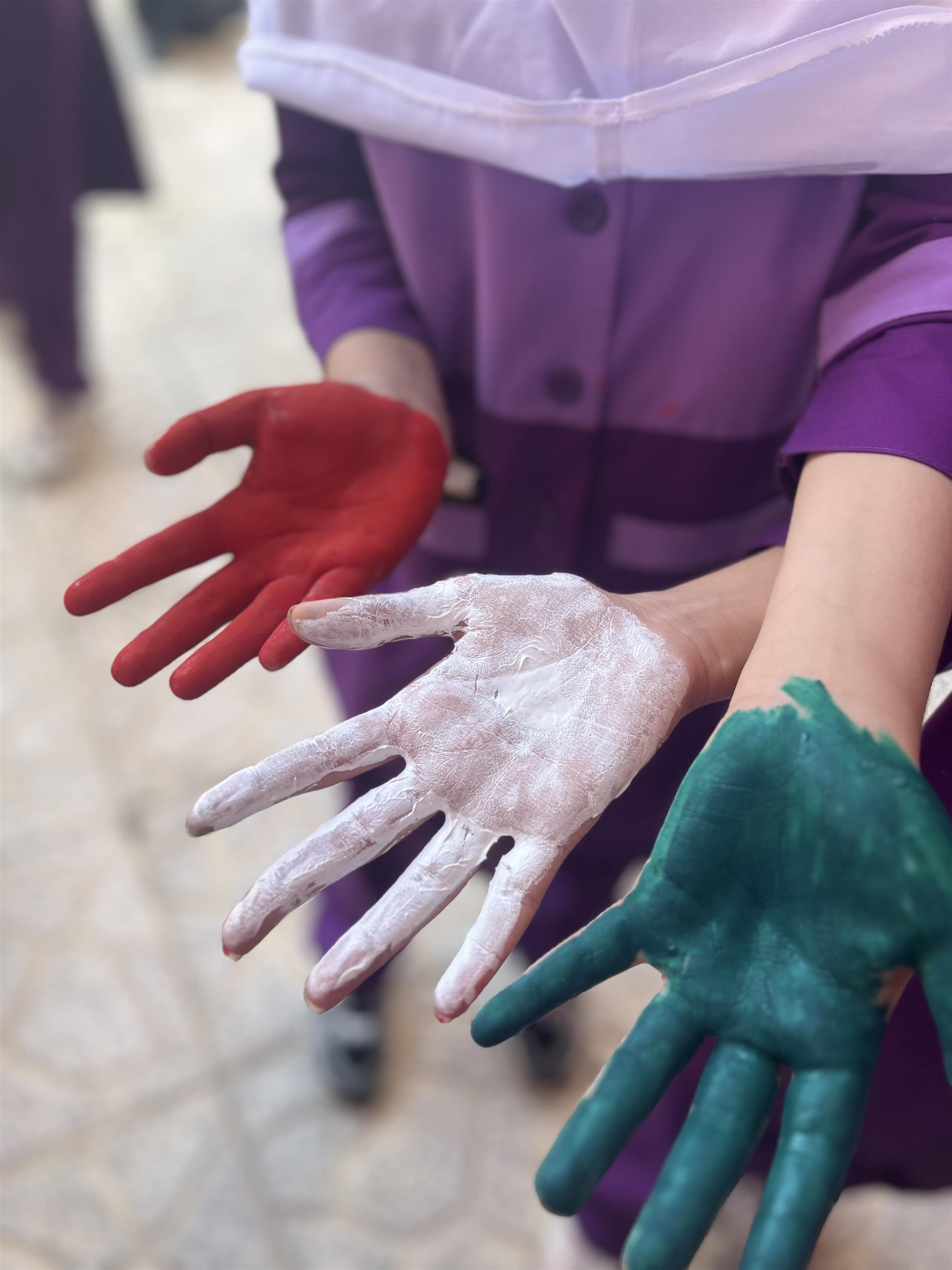 ✅پویش دیوار میثاق ، طراحی پرچم ایران با اثر دست دانش آموزان دبستان