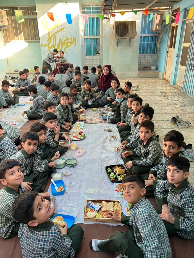 🥘 همه دانش آموزان بعد از صف صبحگاهی و شستن دستها ی خود در حیاط آموزشگاه به همراه آموزگار خود سفره ی صبحانه را پهن نموده