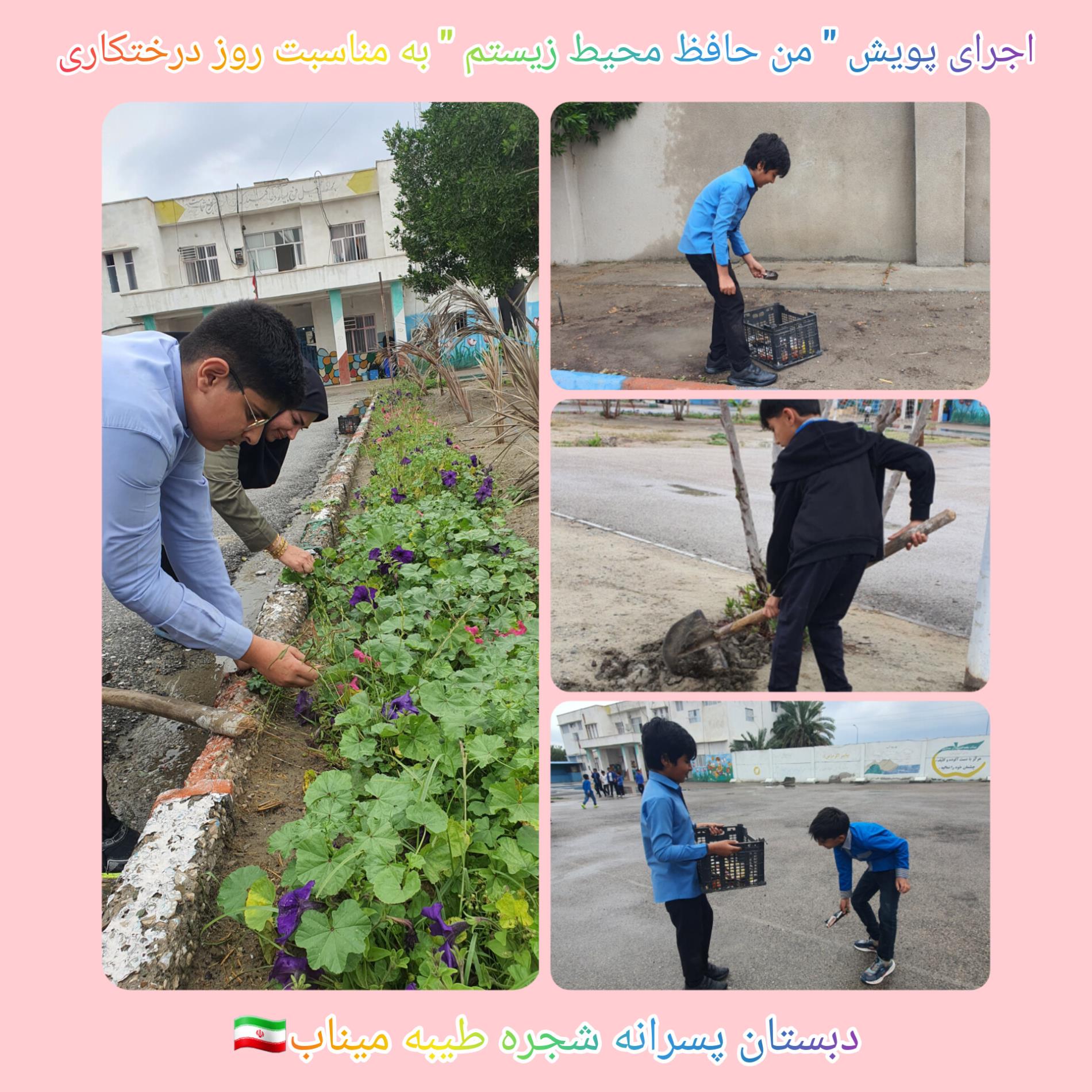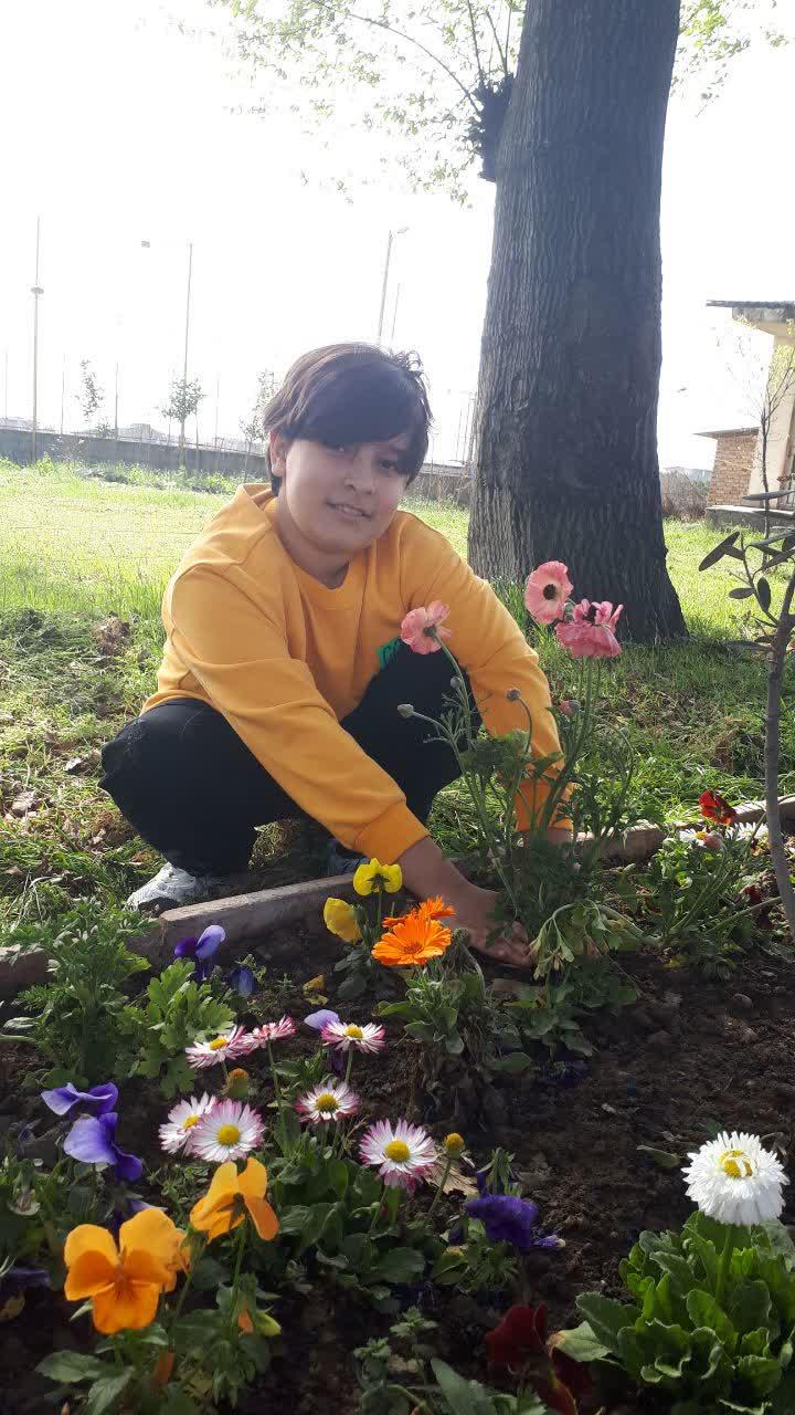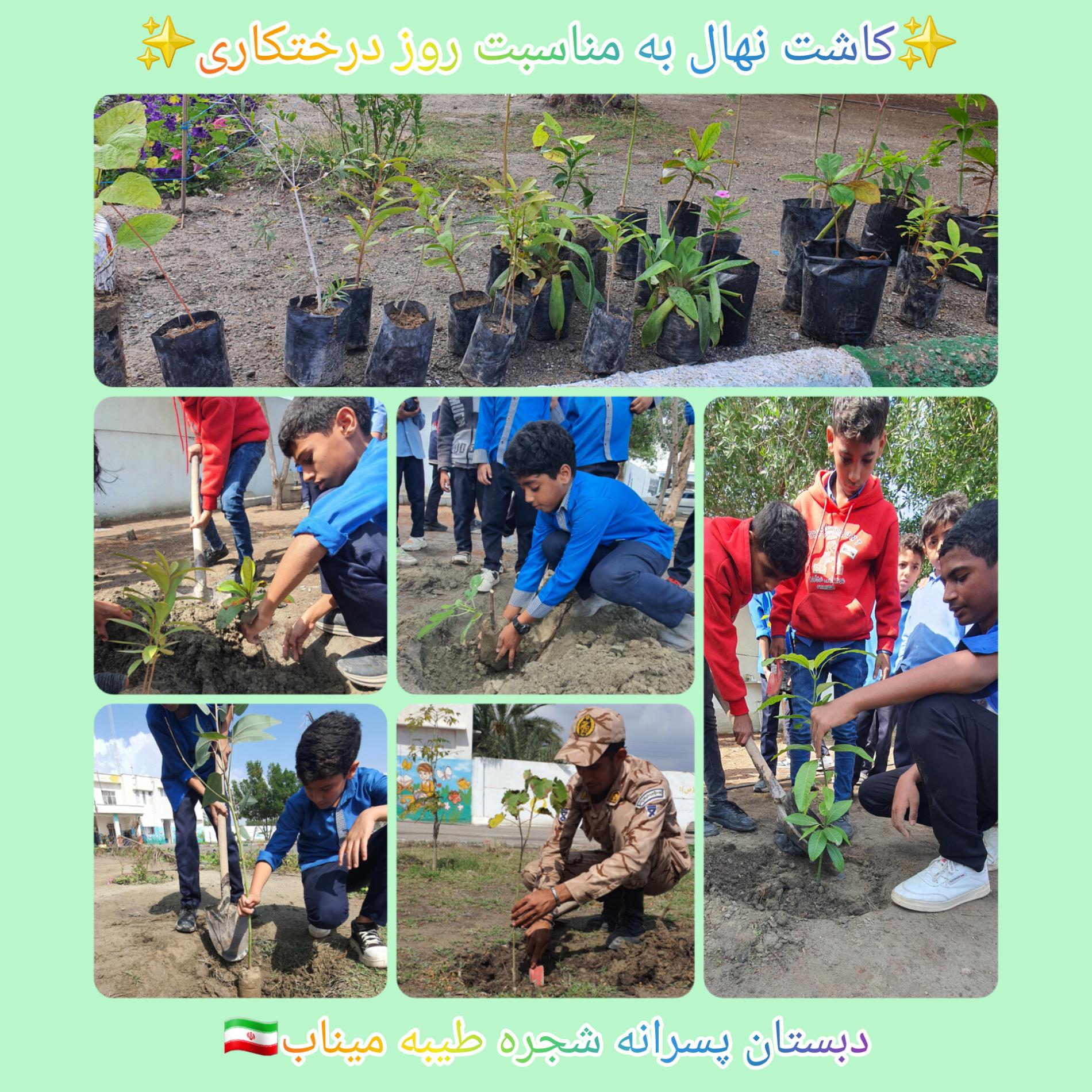کاشت نهال در باغچه حیاط مدرسه با همکاری دانش آموزان عزیز